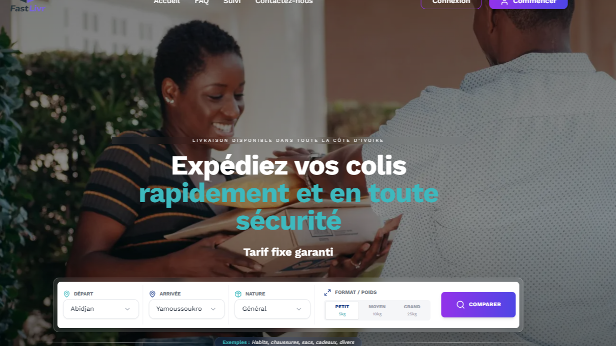 FASTLIVR is a digital platform that allows users to ship their packages to various cities in Ivory Coast without having to leave their homes.